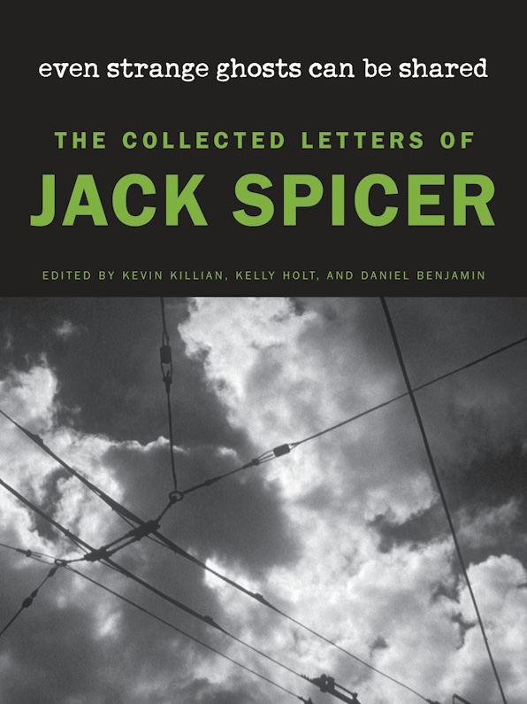 The recent publication of Even Strange Ghosts Can be Shared: The Collected Letters of Jack Spicer (512 pages; Wesleyan University Press) returns us to this complex world in voluminous depth. It was edited by the late Kevin Killian, a Spicer devotee—who, along with Peter Gizzi, co-edited, My Vocabulary Did This To Me, a volume of Spicer’s collected poems—along with Daniel Benjamin and Kelly Holt.