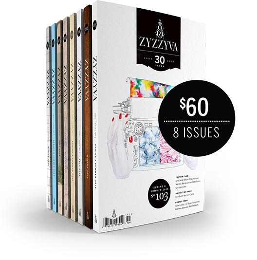 Excerpted from the current issue ZYZZYVA Two-Year Subscription Posted on April 2, 2015 by ZYZZYVA ZYZZYVA Two-Year Subscription